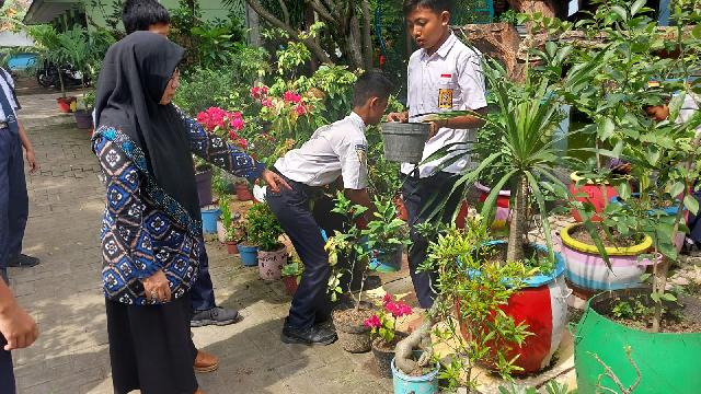 Para Siswa Merawat Tanaman Sekolah | Potret Siswa dan Guru Menata dan Menanam Tanaman Hias |