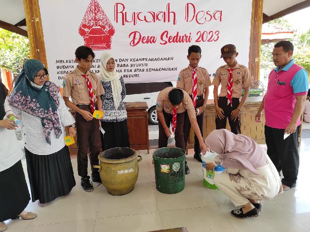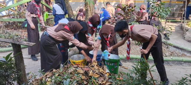 Siswa Mengumpulkan Daun Untuk Komposting | Siswa Melakukan Kampanye Pengolahan Sampah Kepada Warga Desa |