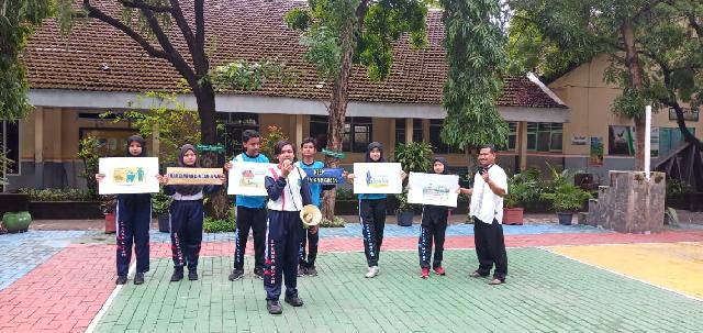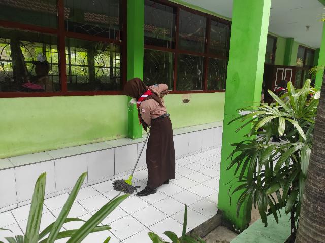 Siswa Mengepel Lantai Teras Depan Kelas | Siswa_Siswi Melakukan Kampanye Konservasi Energi Kepada Warga Sekolah |