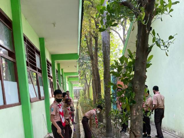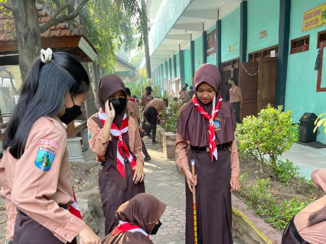 Siswa Membersihkan Kaca kelas | Siswa-Siswi menyapu Teras Kelas |